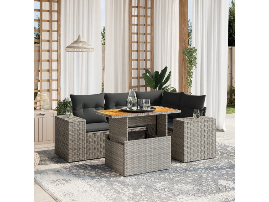 5dílná zahradní sedací souprava s poduškami šedá polyratan 3272621