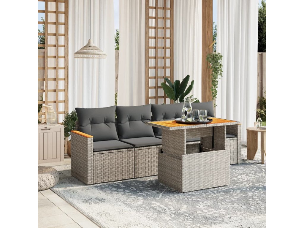 5dílná zahradní sedací souprava s poduškami šedá polyratan 3272957