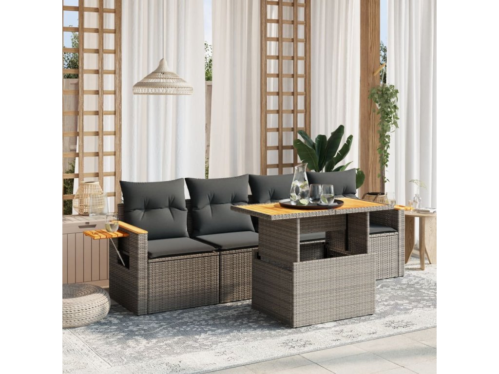 5dílná zahradní sedací souprava s poduškami šedá polyratan 3273398