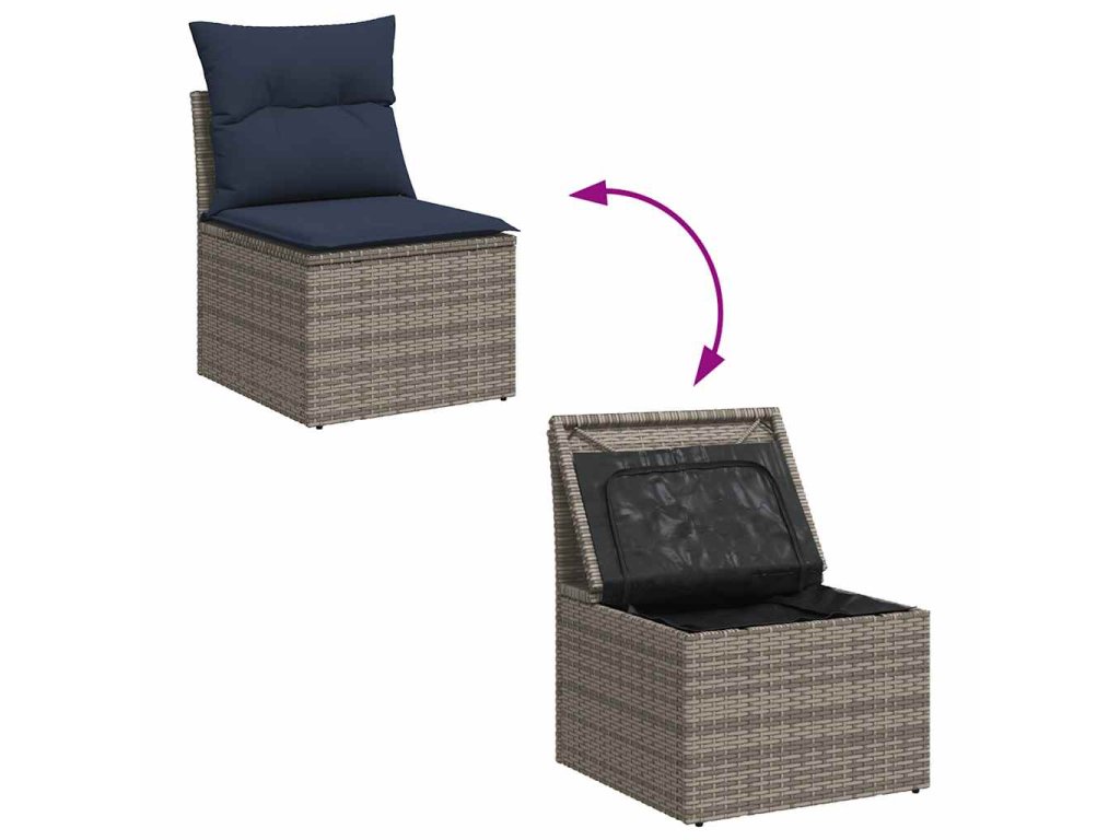 - Úložný prostor s voděodolným vakem: Každý zahradní sedací díl má úložný prostor pod sedákem, který je opatřen voděodolnou vložkou a poslouží vám k ukládání podušek, hraček a dalších věcí. Vnitřní vak má horní kryt a lze jej bezpečně připevnit k sedáku pomocí suchého zipu, což zaručí větší stabilitu.