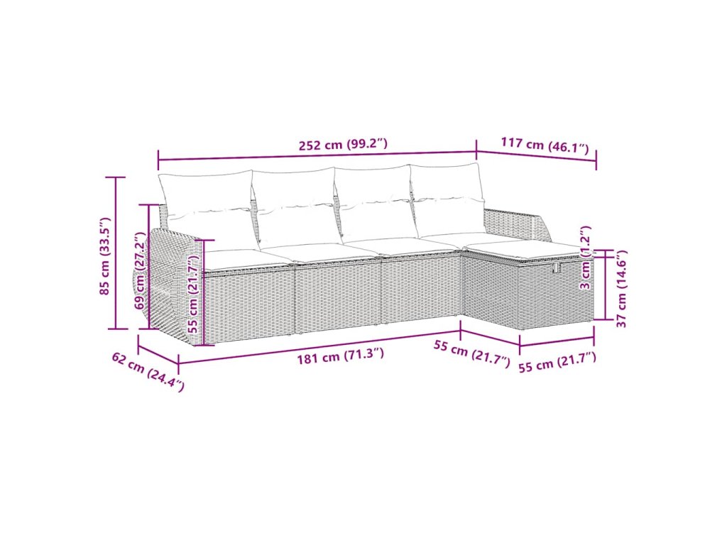 Tato zahradní sedací souprava je dokonalým doplňkem vaší zahrady, terasy nebo dvorku a poskytne vám pohodlné a příjemné místo, kde si můžete povídat s rodinou a přáteli nebo jen tak odpočívat a užívat si pobyt venku.