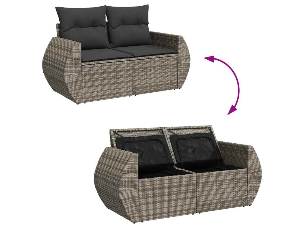 - Úložný prostor s voděodolným vakem: Zahradní nábytek má úložný prostor pod sedákem, který je opatřen voděodolnou vložkou a poslouží vám k ukládání podušek, hraček a dalších věcí. Vnitřní vak lze bezpečně připevnit k venkovnímu nábytku pomocí suchého zipu, což zaručí větší stabilitu.