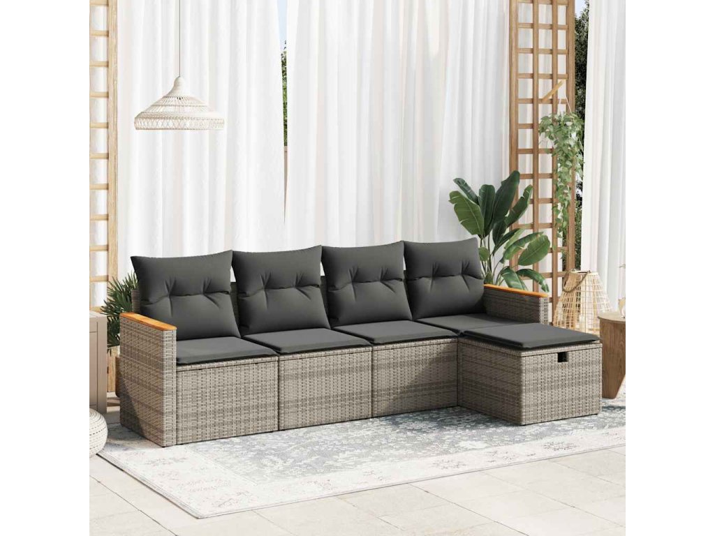 5dílná zahradní sedací souprava s poduškami šedá polyratan 3325903