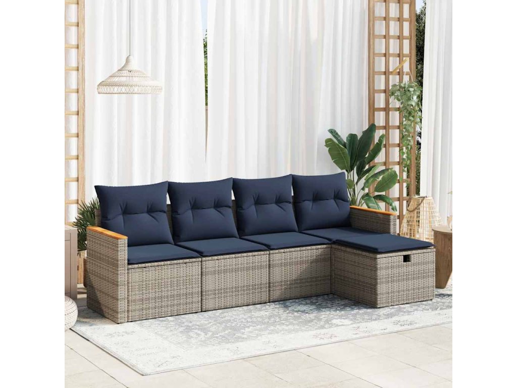 5dílná zahradní sedací souprava s poduškami šedá polyratan 3325904