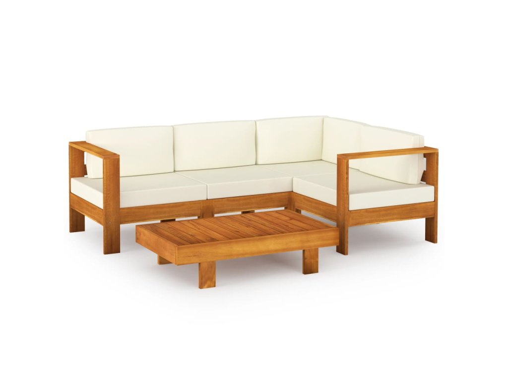 Zahradní sedací souprava je pečlivě vyrobená z masivního akáciového dřeva. Je robustní, má dlouhou životnost a hodí se pro venkovní použití. Silně polstrované podušky na sedák a opěradlo vám poskytnou extra pohodlí pro vaše chvíle odpočinku. Povrch napuštěný olejem se snadno čistí vlhkým hadříkem a robustní deska stolu je ideální pro odkládání nápojů a jídla v dosahu ruky.