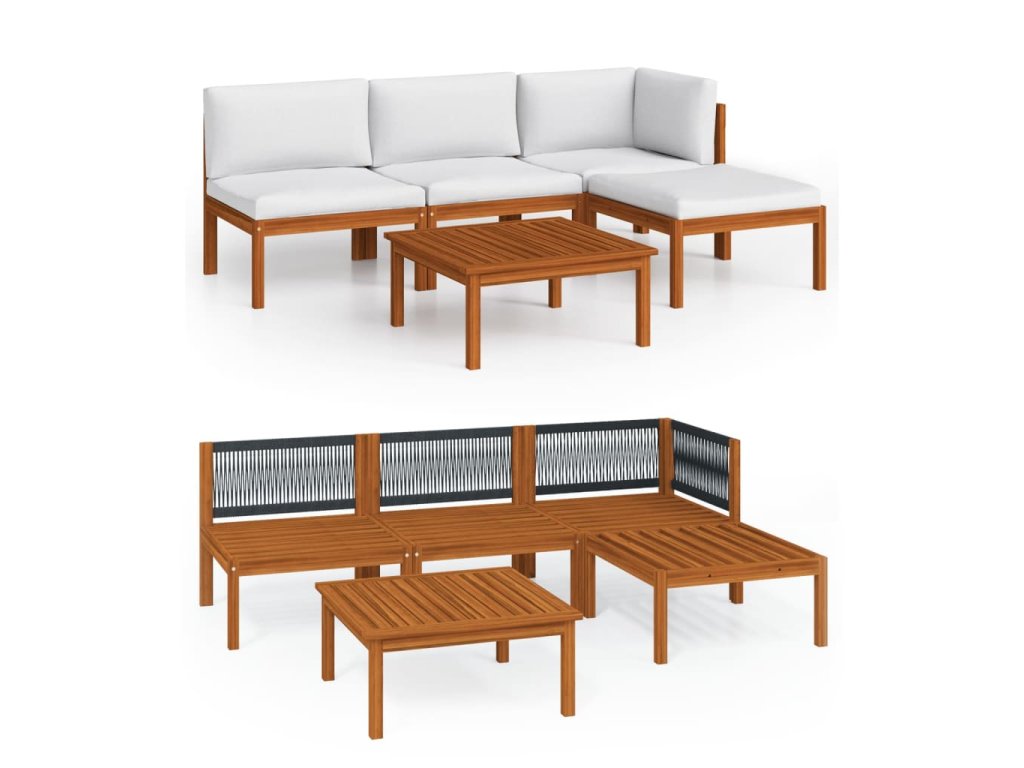 5dílná zahradní sedací souprava s polštáři krémové dřevo akácie a provaz 3057878
