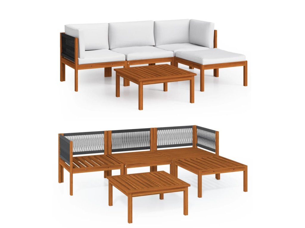 5dílná zahradní sedací souprava s polštáři krémové dřevo akácie a provaz 3057879