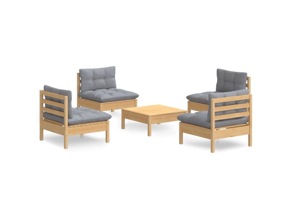 5dílná zahradní sedací souprava s šedými poduškami borovice 3096033
