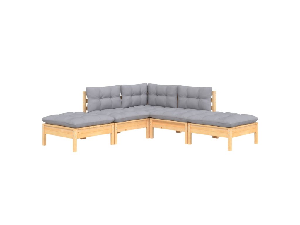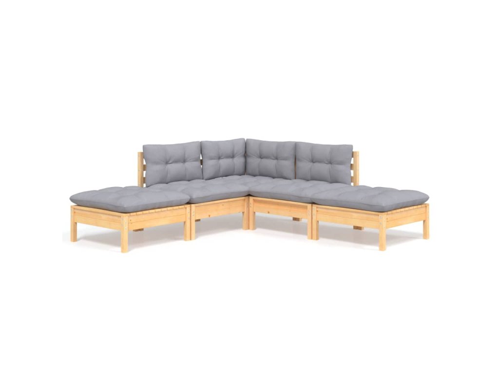 5dílná zahradní sedací souprava s šedými poduškami borovice 3096309