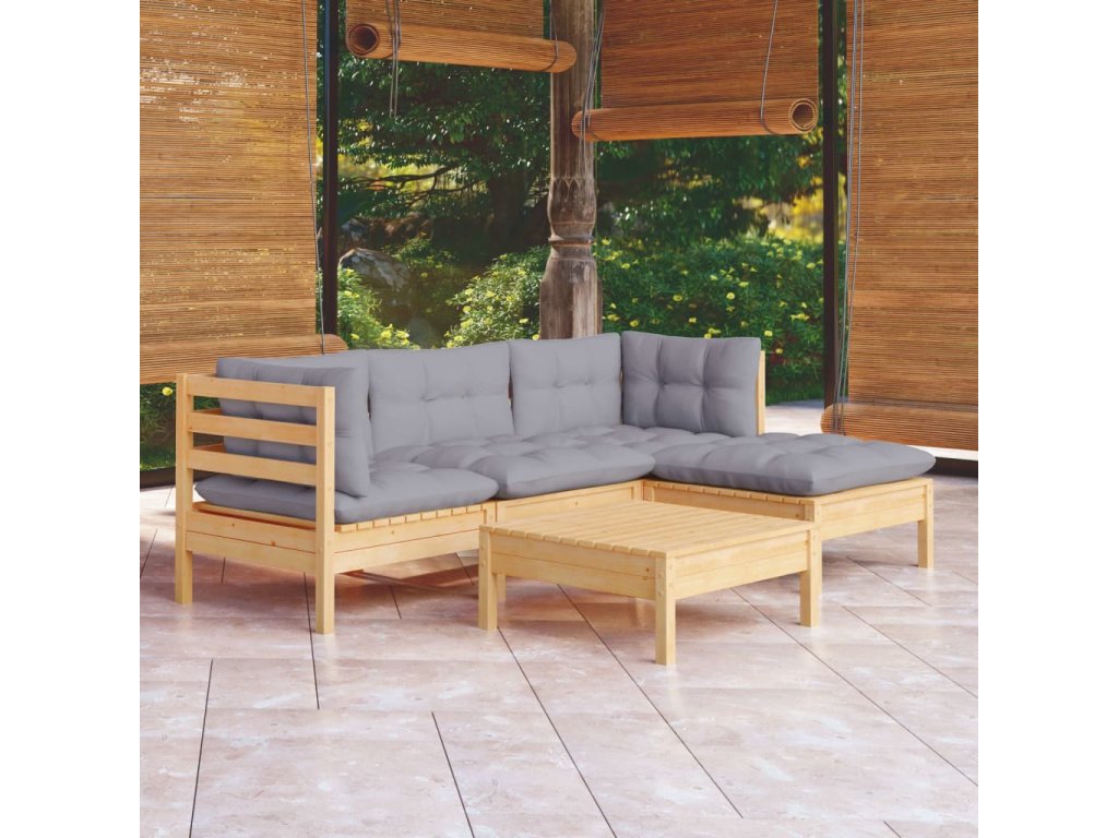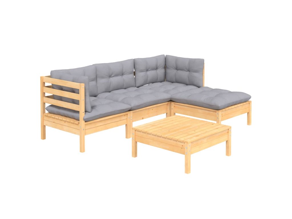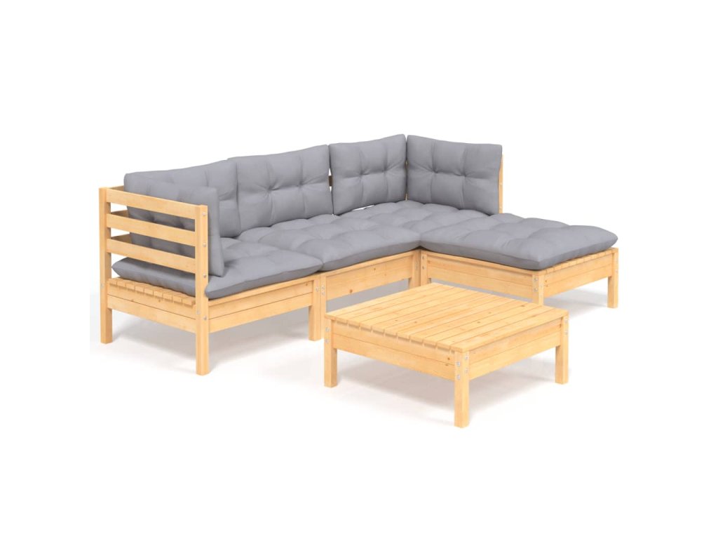 5dílná zahradní sedací souprava s šedými poduškami borovice 3096351