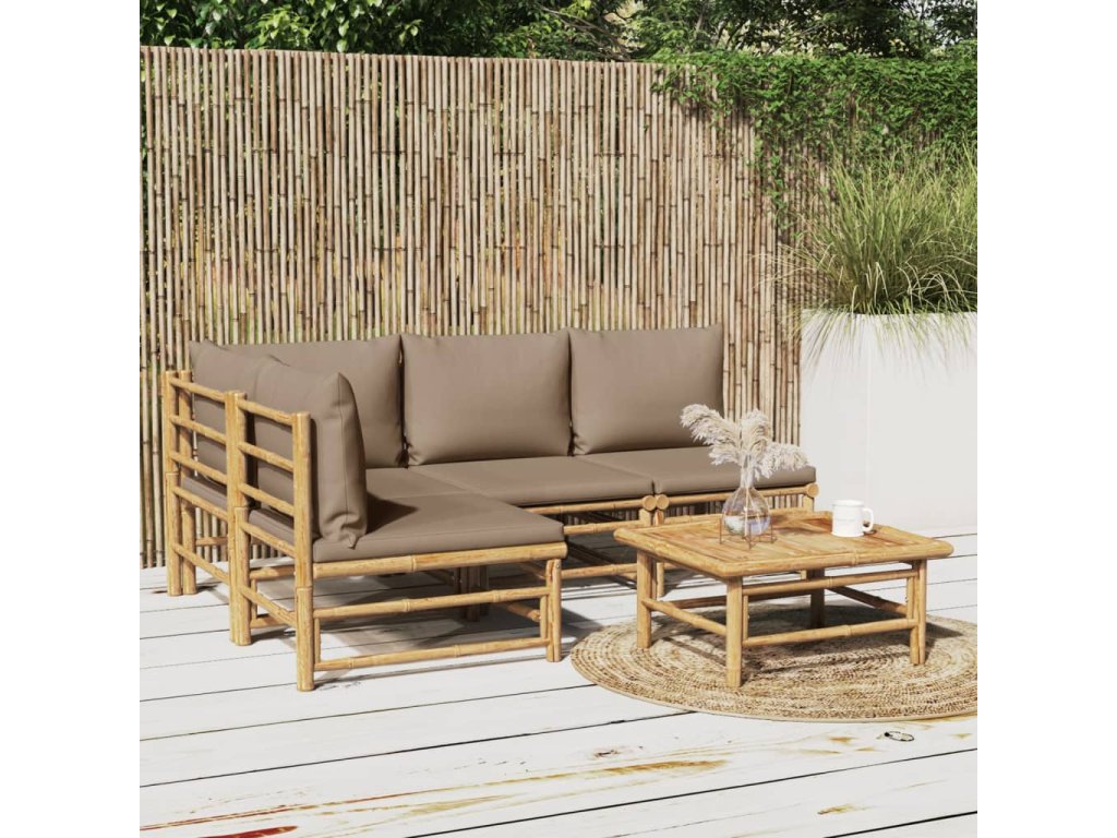 5dílná zahradní sedací souprava s taupe poduškami bambus 3155138