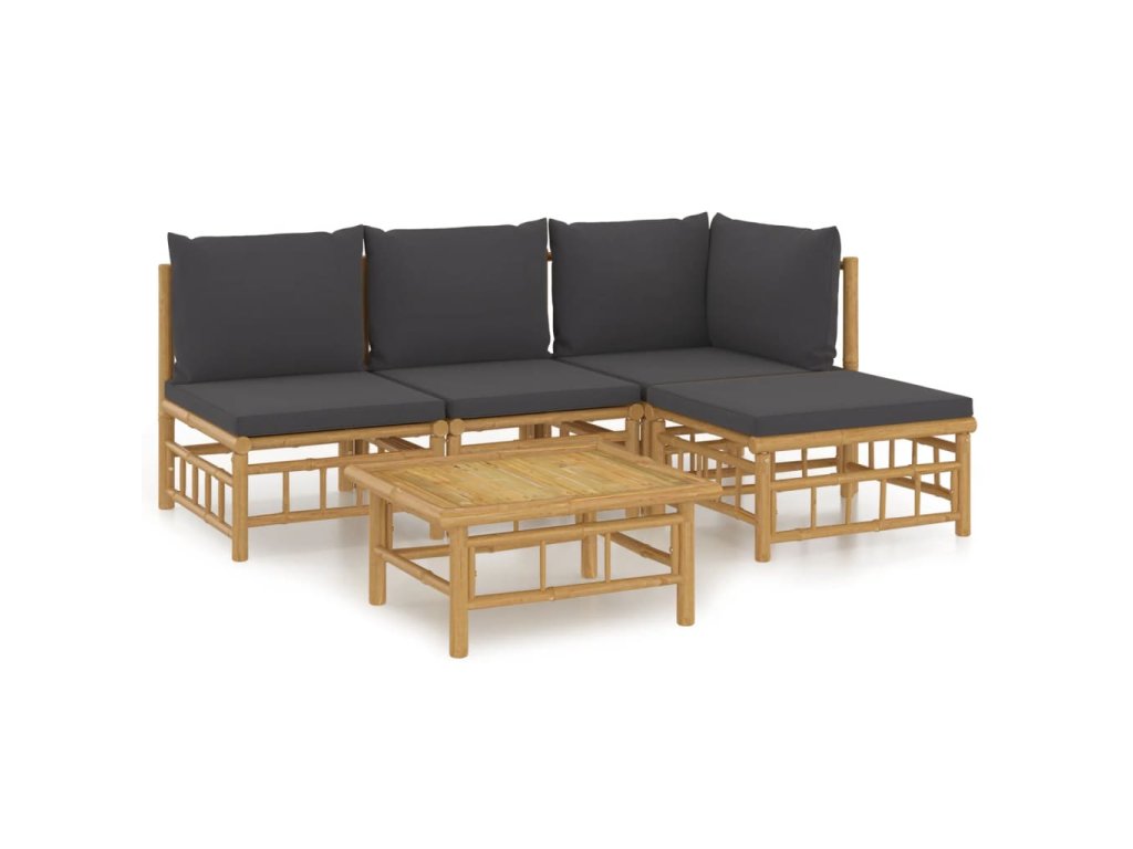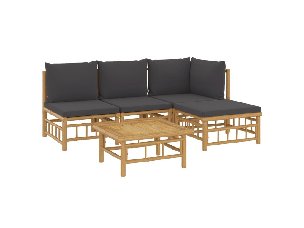 5dílná zahradní sedací souprava s tmavě šedými poduškami bambus 3155209