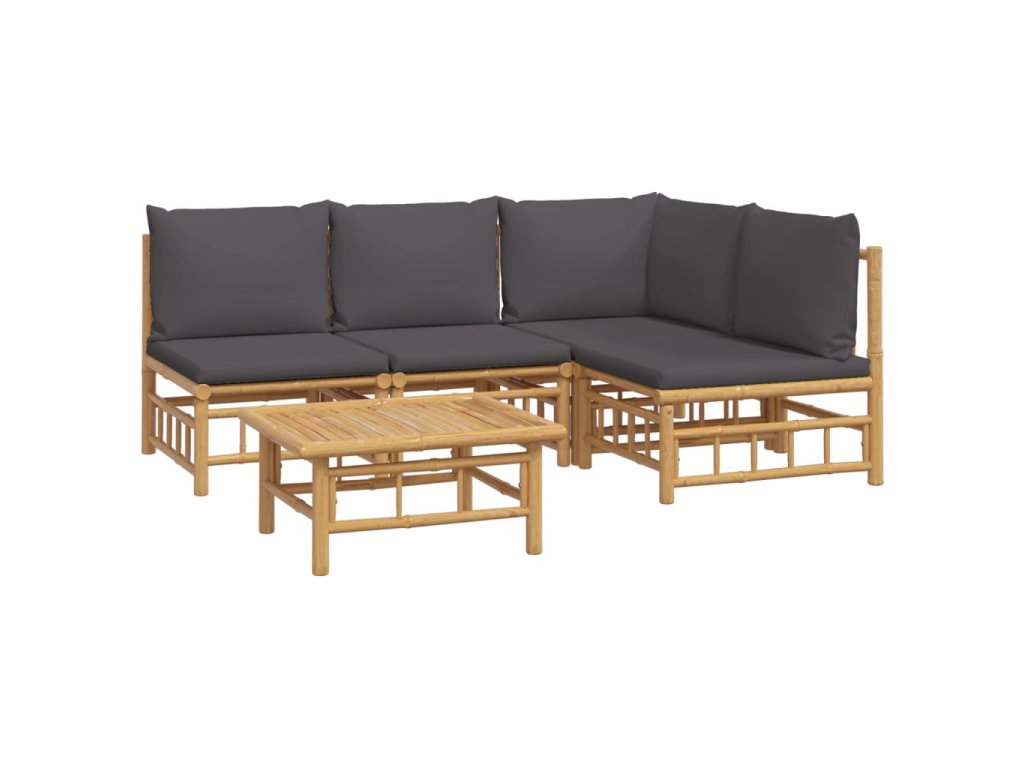 5dílná zahradní sedací souprava s tmavě šedými poduškami bambus 3155234