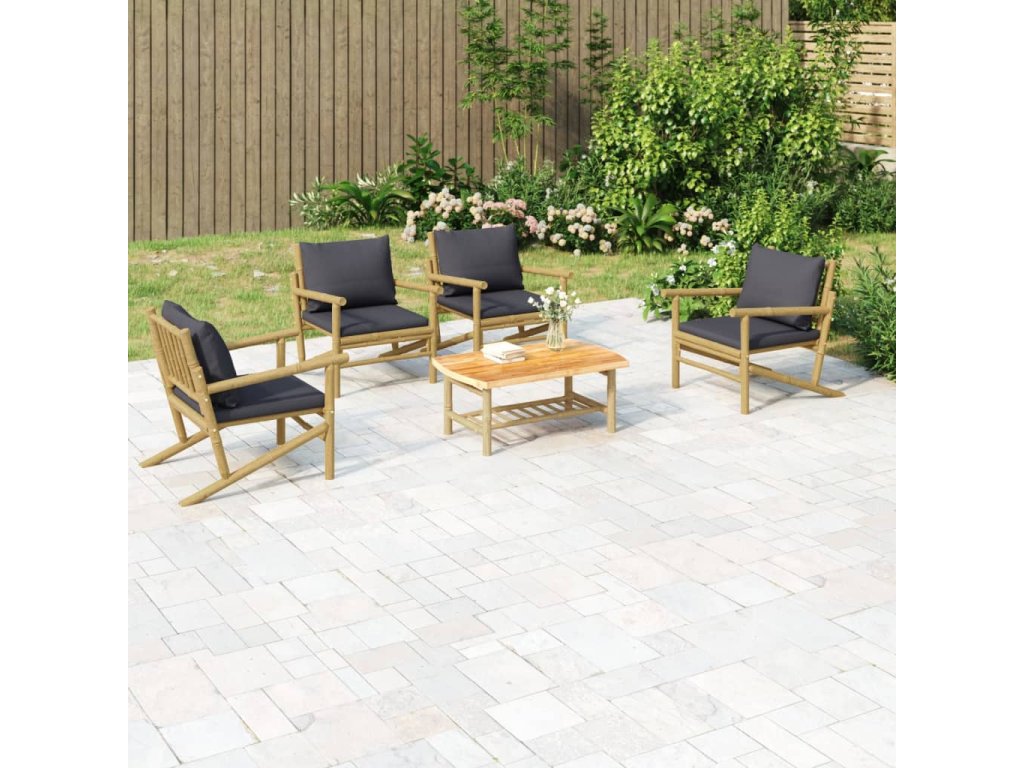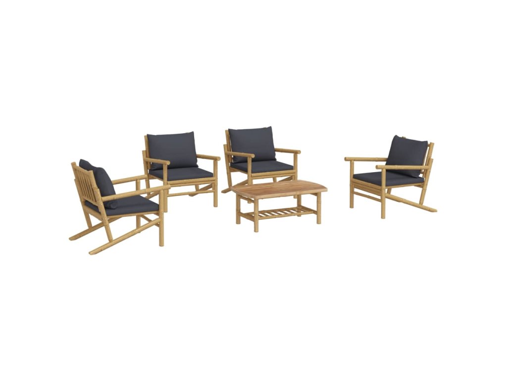 5dílná zahradní sedací souprava s tmavě šedými poduškami bambus 3156476