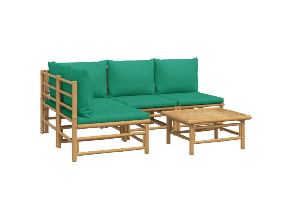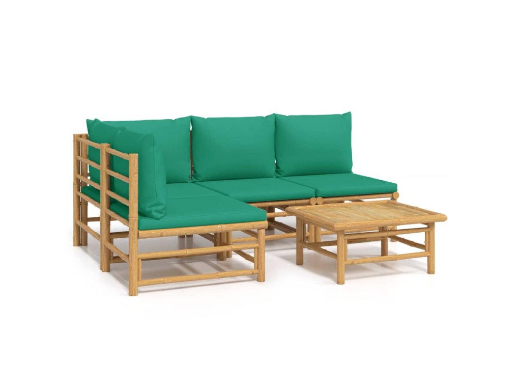 5dílná zahradní sedací souprava se zelenými poduškami bambus 3155170