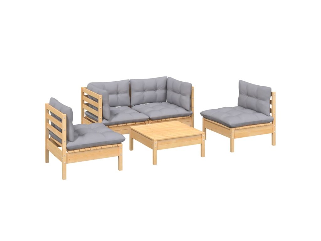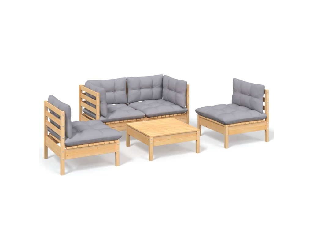 5dílná zahradní sedací souprava šedé podušky masivní borovice 3096177