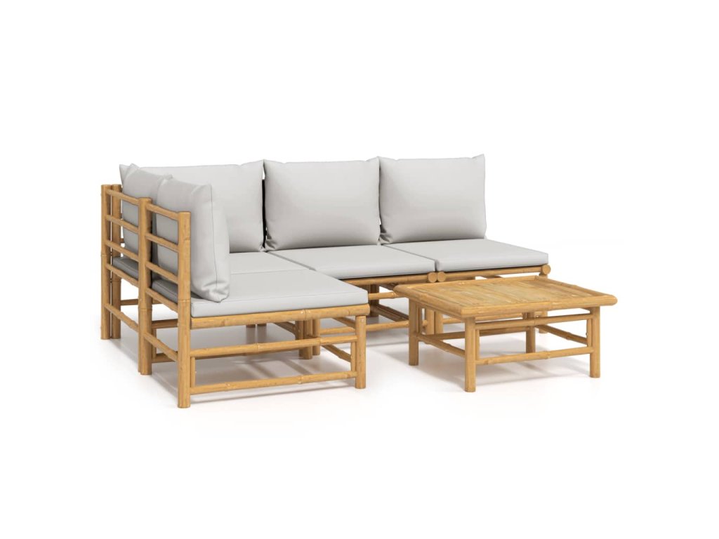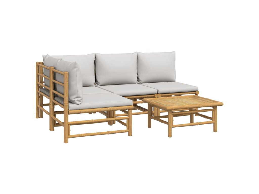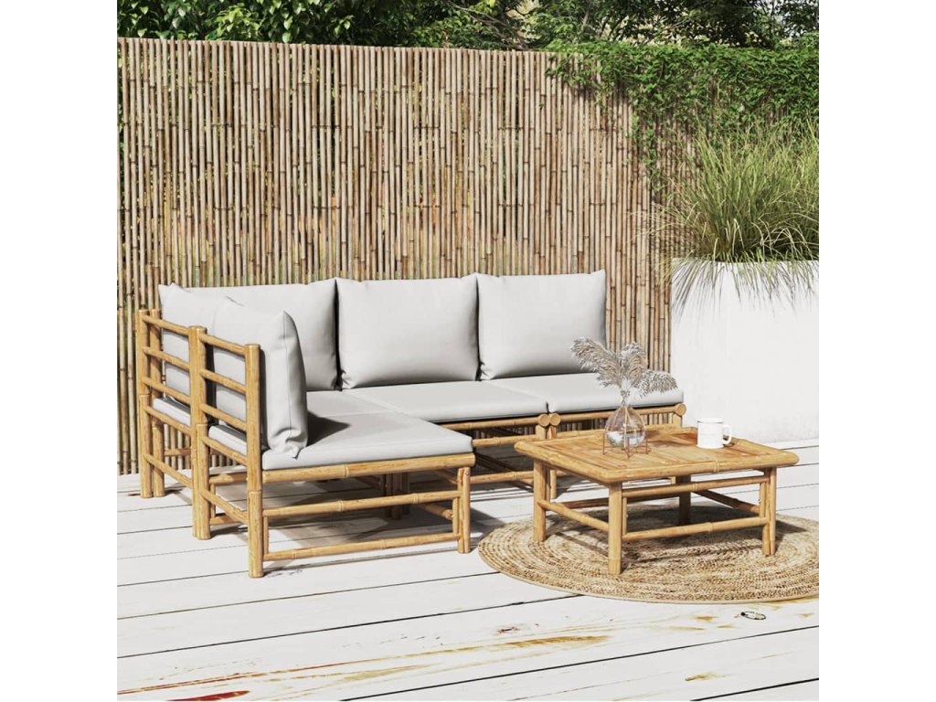 5dílná zahradní sedací souprava světle šedé podušky bambus 3155106