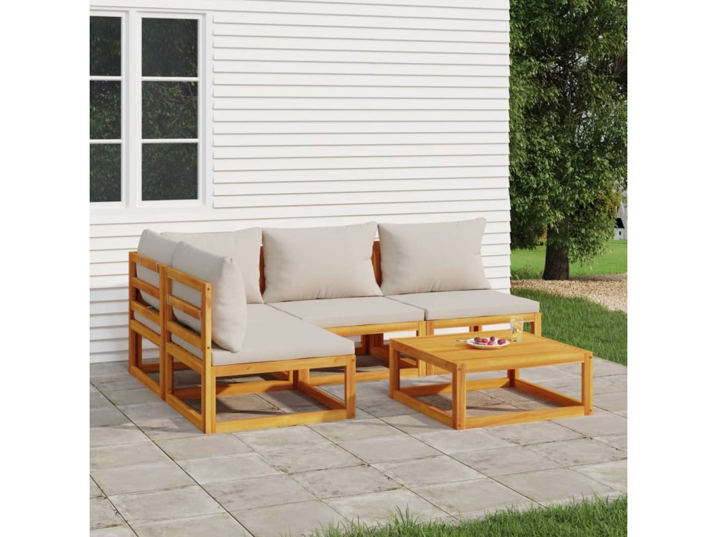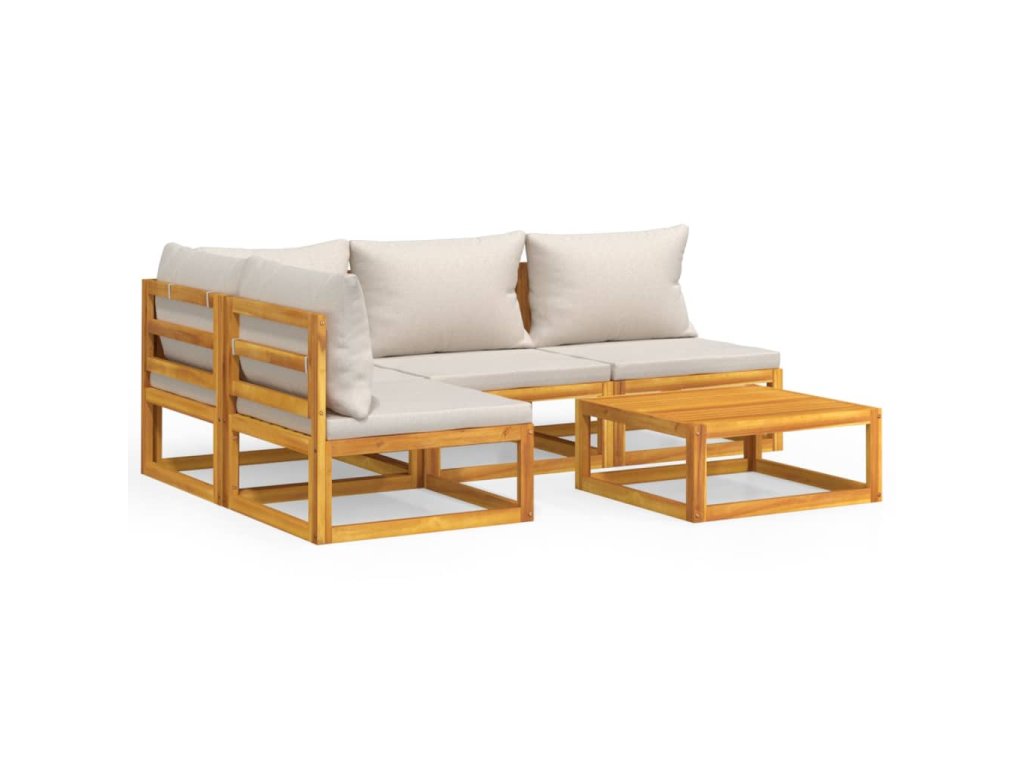 5dílná zahradní sedací souprava světle šedé podušky masiv 3155302