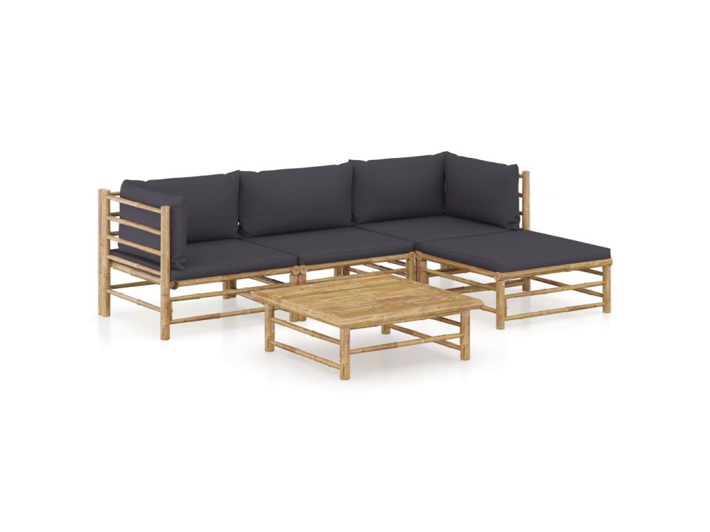 5dílná zahradní sedací souprava + tmavě šedé podušky bambus 3058194