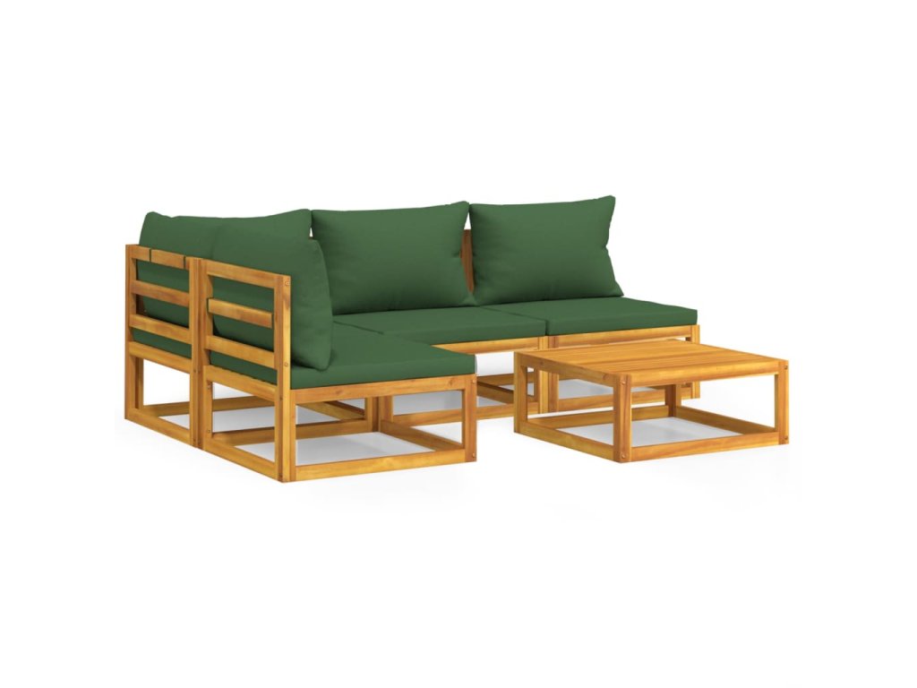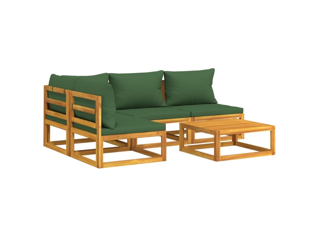 5dílná zahradní sedací souprava zelené podušky masivní dřevo 3155333