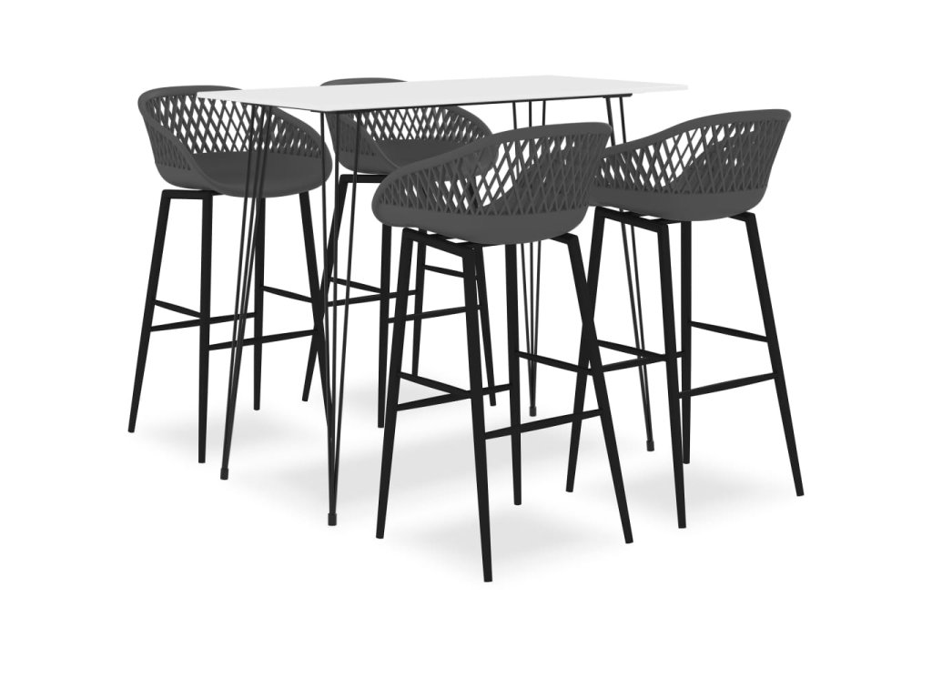 Stolní deska je zhotovená z MDF, takže se snadno čistí. Práškově lakovaný kovový rám přispívá k celkové stabilitě a odolnosti barového stolu. Barové stoličky mají ergonomicky tvarované sedáky s integrovaným nízkým opěradlem v síťovaném provedení. Jelikož jsou vyrobené z robustního PP a podepírají je pevné nohy z práškově lakovaného kovu, jsou mimořádně bytelné a dlouho vám vydrží.