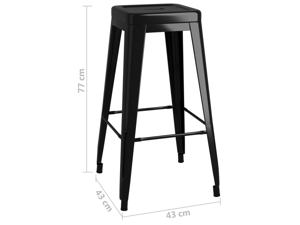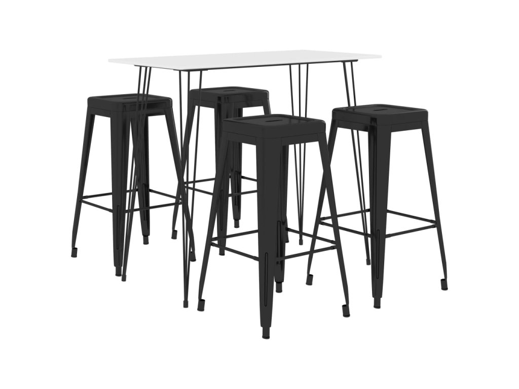 Stolní deska je zhotovená z MDF, takže se snadno čistí. Práškově lakovaný kovový rám přispívá k celkové stabilitě a odolnosti barového stolu. Stoličky jsou vyrobené z natíraného kovu, jsou proto velice pevné a dlouho vám vydrží. Zesílená příčka pod sedákem a opěrka nohou zajišťují lepší rovnováhu. Barové židličky lze navíc stohovat, aby se vám jednodušeji skladovaly, jedná se tedy o dokonalé řešení pro omezené prostory.