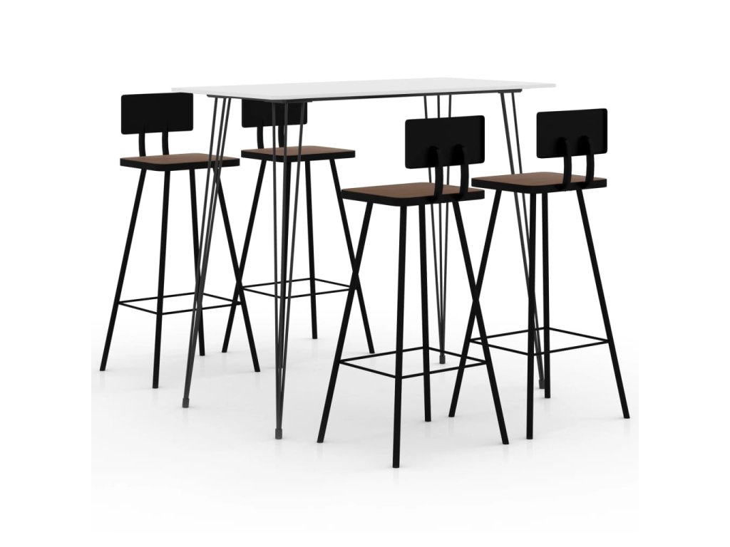 Barový stůl má stolní desku MDF, takže se snadno čistí. Barové stoličky jsou vyrobené z masivního recyklovaného dřeva, které se vyznačuje vlastnostmi celé řady různých dřevin, jako jsou borovice, teak, dub, mangovník, akácie atd. Toto dřevo je navíc je již zestárlé, zvětralé a vyschlé, takže se nesmršťuje ani neohýbá. Známky použití a jemná kresba dřeva odlišují každý kus nábytku od ostatních. Všechny kroky výrobního procesu se provádějí s mimořádnou péčí, ať už se jedná o leštění, natírání anebo lakování. Práškově lakované rámy barových stoliček jsou robustní a stabilní. Opěrky na nohy přispívají k vašemu pohodlí při sezení.