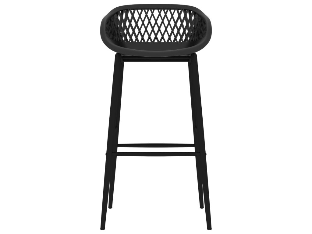 Stolní deska je zhotovená z MDF, takže se snadno čistí. Práškově lakovaný kovový rám přispívá k celkové stabilitě a odolnosti barového stolu. Barové stoličky mají ergonomicky tvarované sedáky s integrovaným nízkým opěradlem v síťovaném provedení. Jelikož jsou vyrobené z robustního PP a podepírají je pevné nohy z práškově lakovaného kovu, jsou mimořádně bytelné a dlouho vám vydrží.