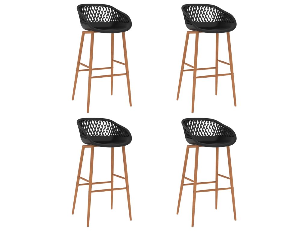 Stolní deska je zhotovená z MDF, takže se snadno čistí. Práškově lakovaný kovový rám přispívá k celkové stabilitě a odolnosti barového stolu. Barové stoličky mají ergonomicky tvarované sedáky s integrovaným nízkým opěradlem v síťovaném provedení. Jelikož jsou vyrobené z robustního PP a podepírají je pevné kovové nohy s termotransferovým potiskem v imitaci dřeva, jsou mimořádně bytelné a dlouho vám vydrží.