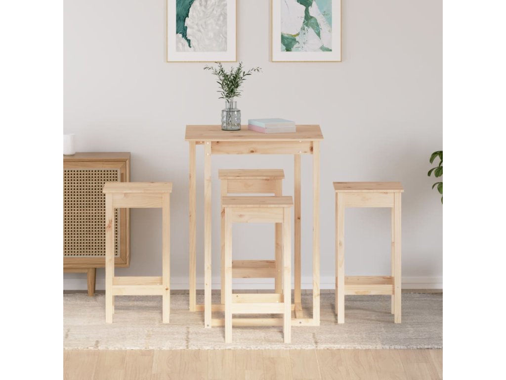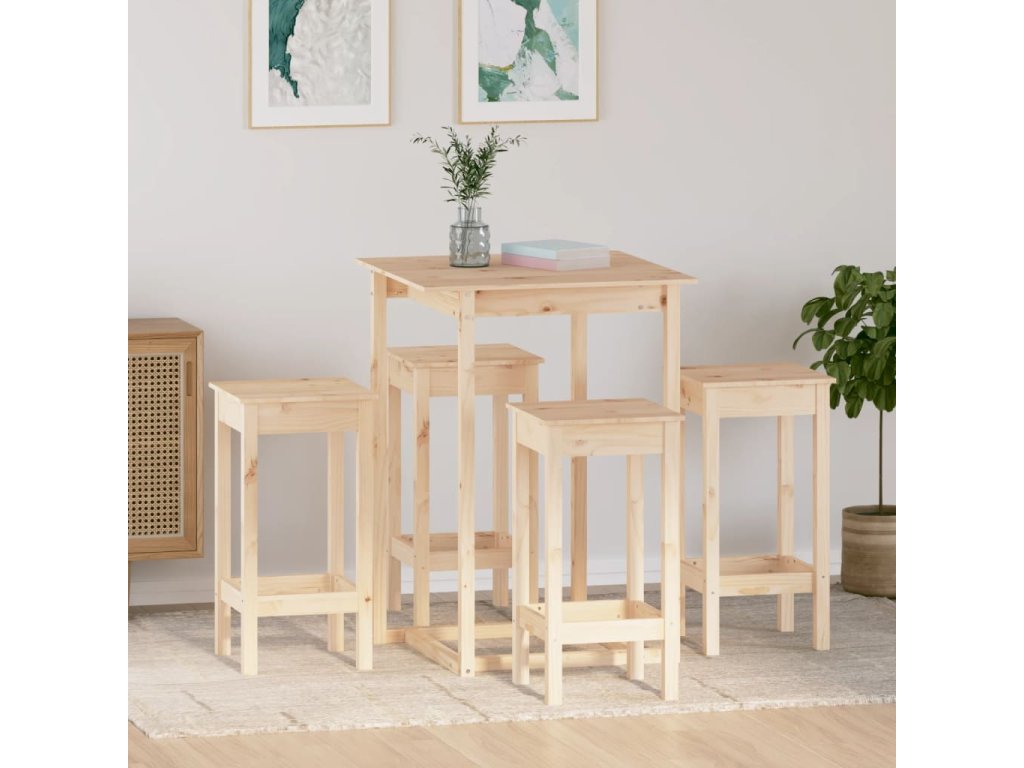- Masivní borové dřevo: Barový set je vyroben z masivní borovice. Masivní borové dřevo je krásný přírodní materiál. Má rovnou kresbu a obsahuje suky, které materiálu dodávají jeho charakteristický, rustikální vzhled.