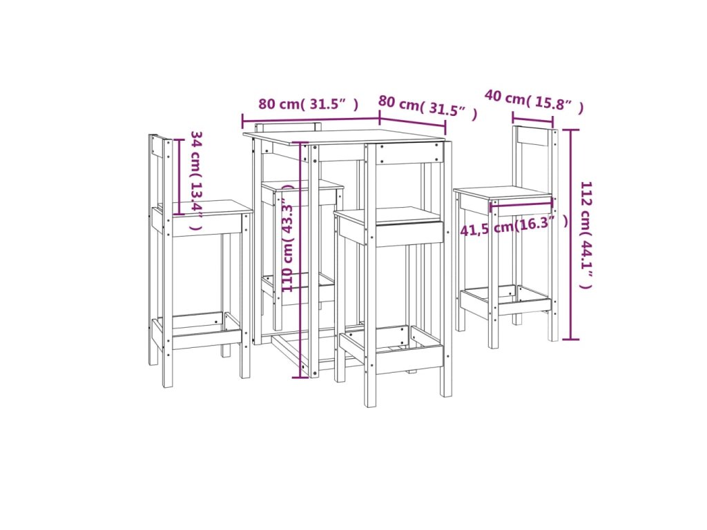 - Rozměry barového stolu: 80 x 80 x 110 cm (Š x H x V)