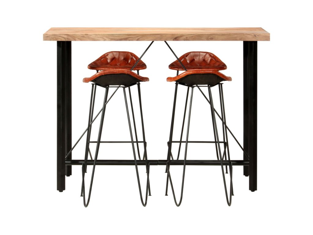 5dílný barový set masivní dřevo a pravá kůže 278764