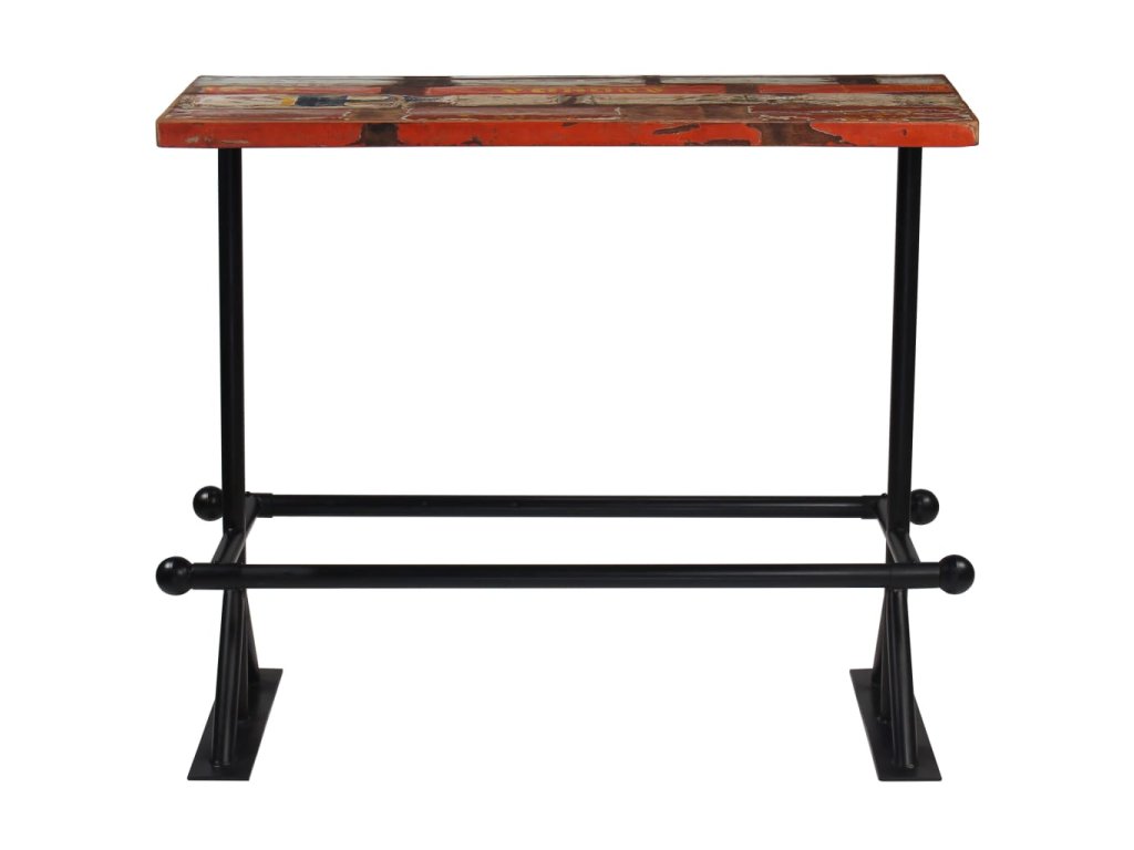 Barový stůl a židle jsou vyrobené z masivního recyklovaného dřeva, které pochází z trámů, podlah a podpěrných nosníků ze starých stržených budov. Může tedy obsahovat různé typy dřeva, jako je borovice, teak, buk, dub, cedr, mangovník, akácie atd. Znamená to, že recyklované dřevo má charakteristiky všech těchto různých druhů dřevin. Navíc je již zestárlé, zvětralé a vyschlé, takže se nesmršťuje ani neohýbá.