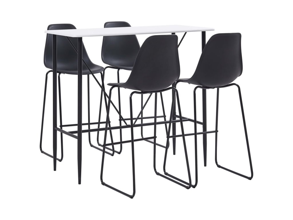 Náš barový set je ideální, pokud si chcete vychutnat skleničku vína nebo drobné občerstvení na baru. Skvěle vám však poslouží i jako dodatečné místo k sezení, když vám přijde návštěva. Zásilka obsahuje barový stůl a 4 barové židle.