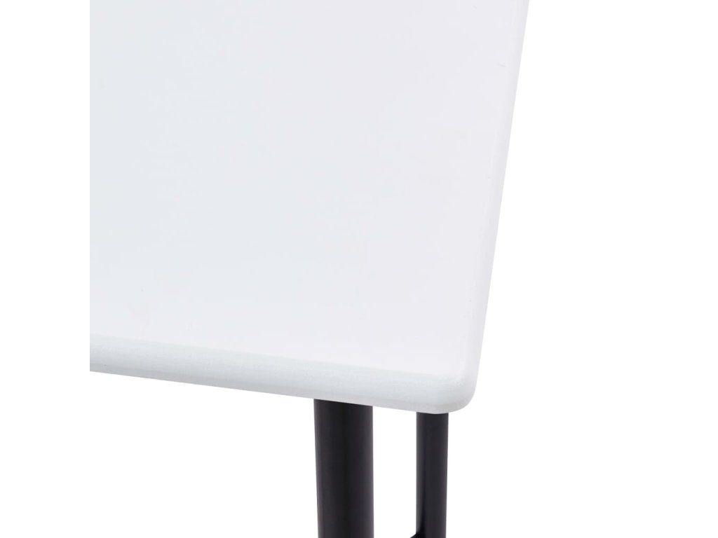 - Materiál: MDF potažená vrstvou PVC (stolní deska) + ocel s práškovým nástřikem (nohy)