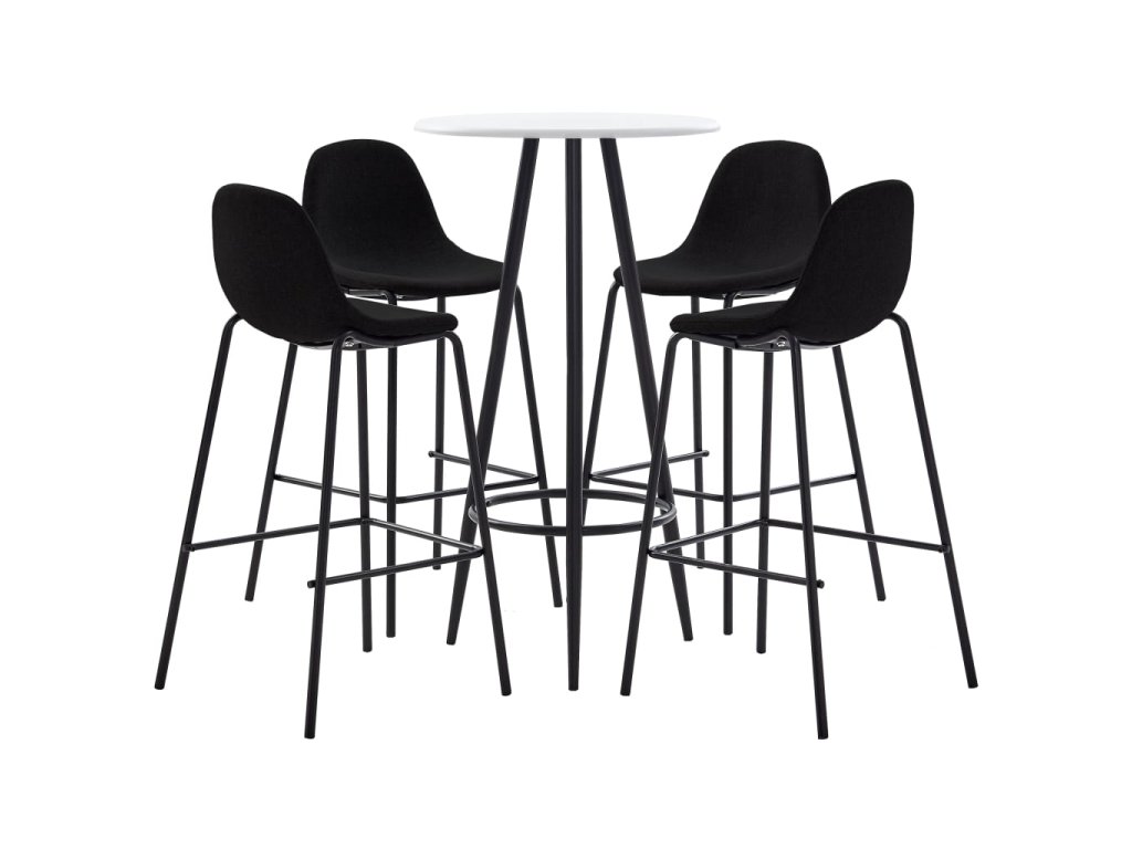 Náš barový set je ideální, pokud si chcete vychutnat skleničku vína nebo drobné občerstvení na baru. Skvěle vám však poslouží i jako dodatečné místo k sezení, když vám přijde návštěva. Zásilka obsahuje barový stůl a 4 barové židle.
