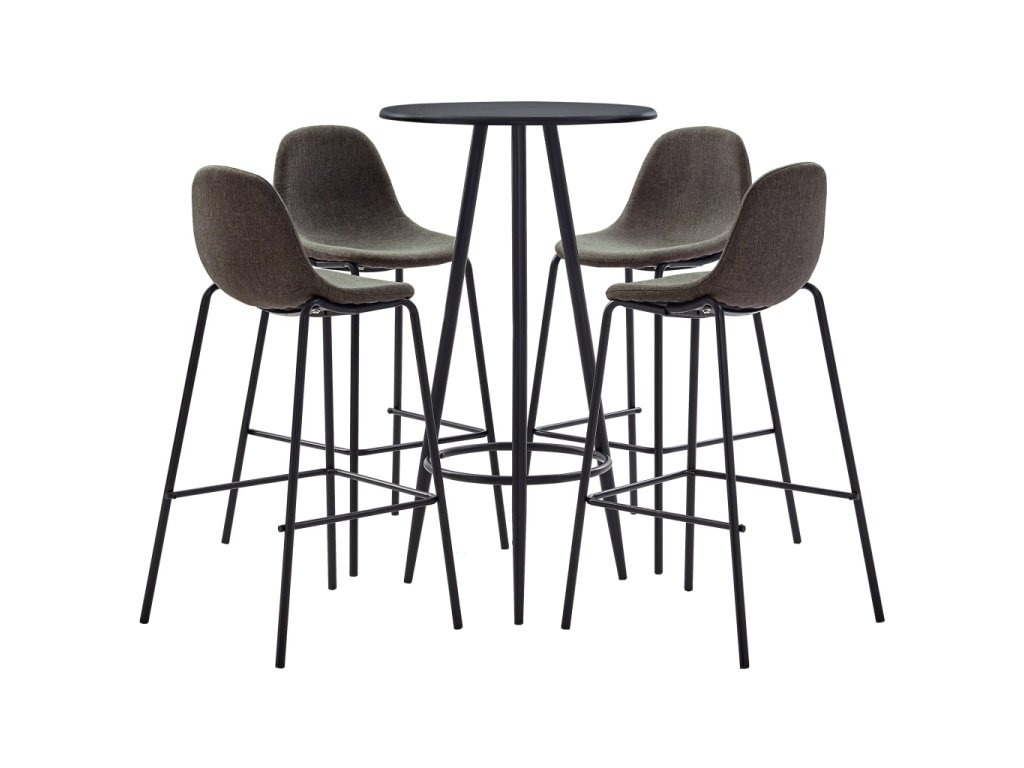 Náš barový set je ideální, pokud si chcete vychutnat skleničku vína nebo drobné občerstvení na baru. Skvěle vám však poslouží i jako dodatečné místo k sezení, když vám přijde návštěva. Zásilka obsahuje barový stůl a 4 barové židle.