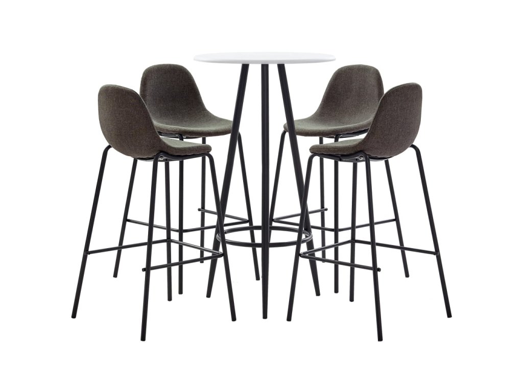 Náš barový set je ideální, pokud si chcete vychutnat skleničku vína nebo drobné občerstvení na baru. Skvěle vám však poslouží i jako dodatečné místo k sezení, když vám přijde návštěva. Zásilka obsahuje barový stůl a 4 barové židle.