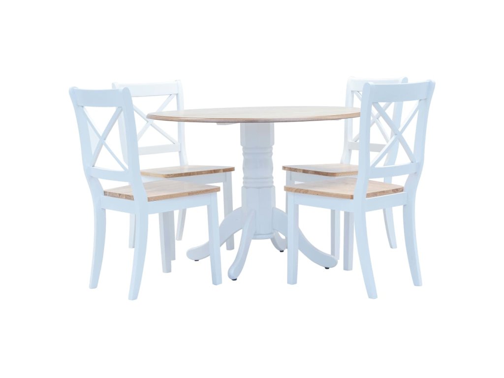 5dílný jídelní set masivní kaučukovník bílo-hnědý 276870