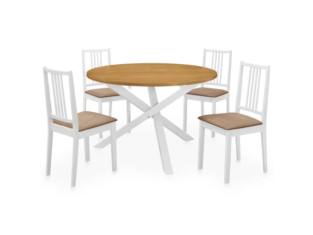 - Balení obsahuje 1 jídelní stůl a 4 jídelní židle s poduškami