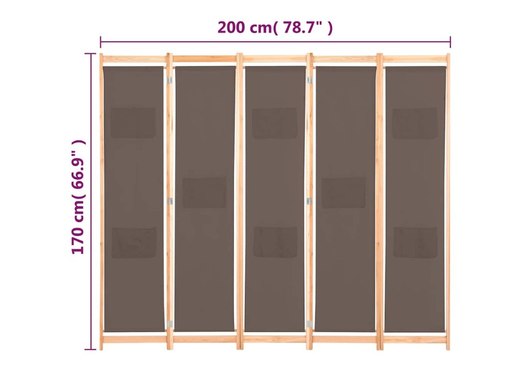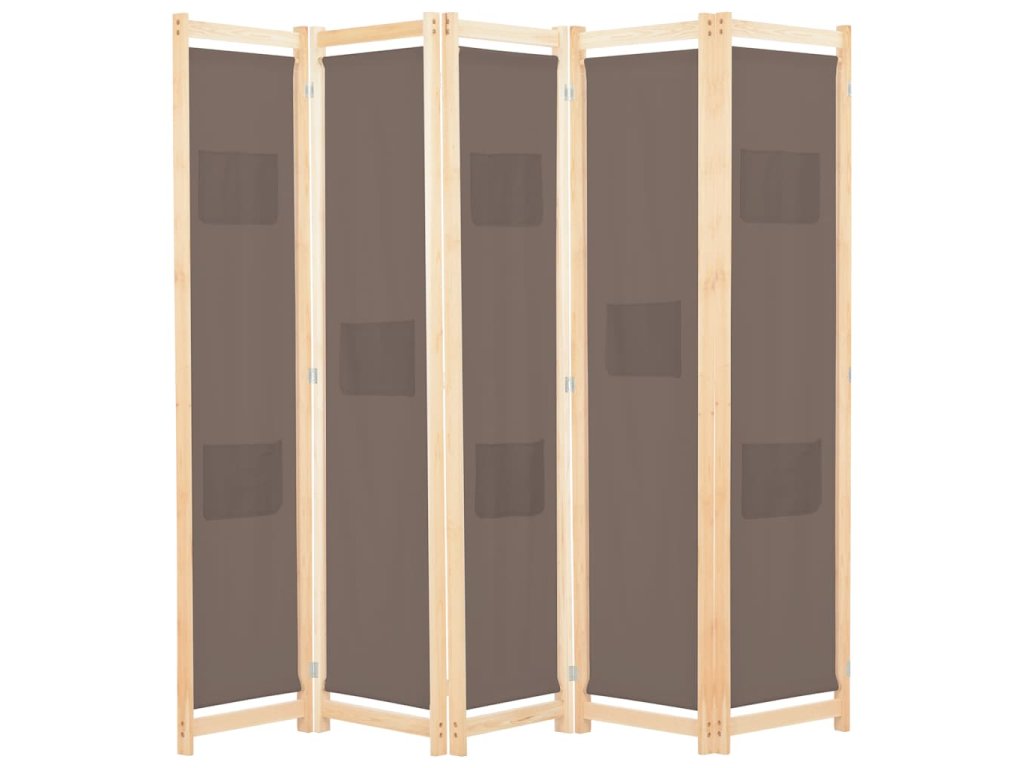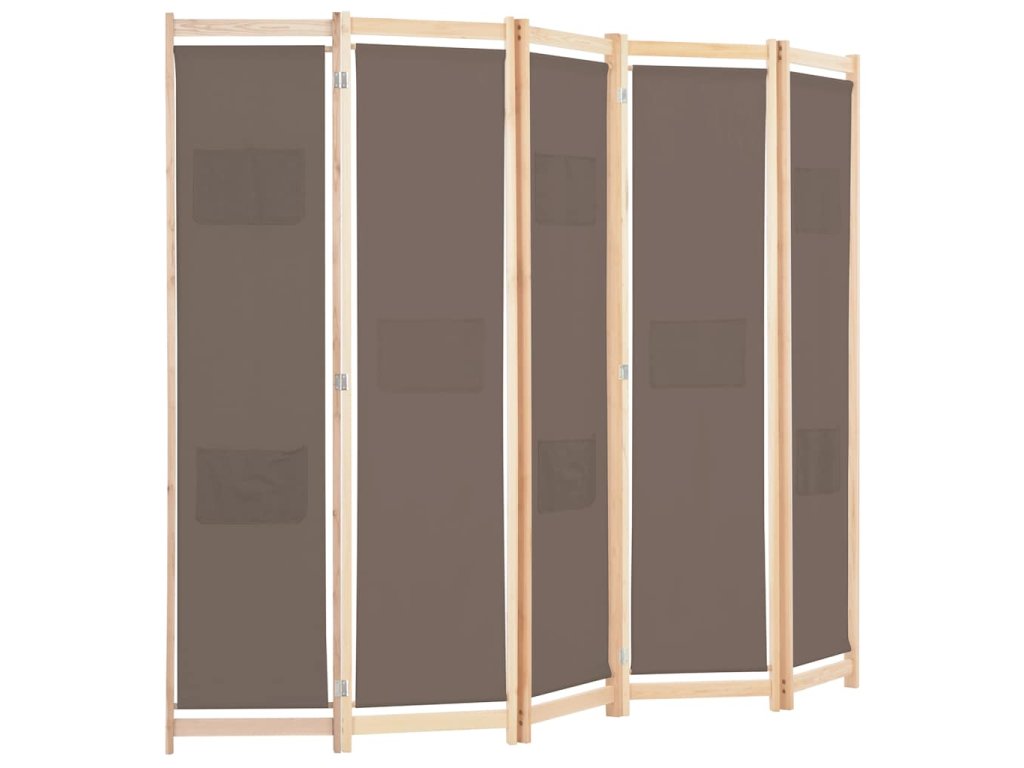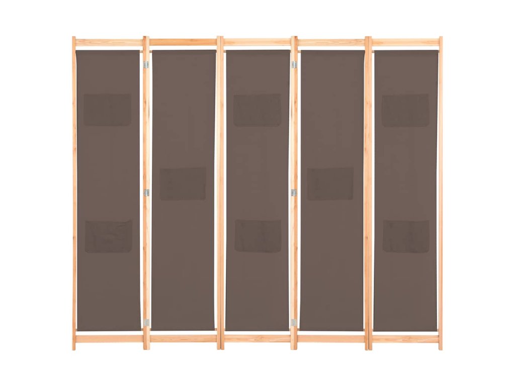 5dílný paraván hnědý 200 x 170 x 4 cm textil 248181