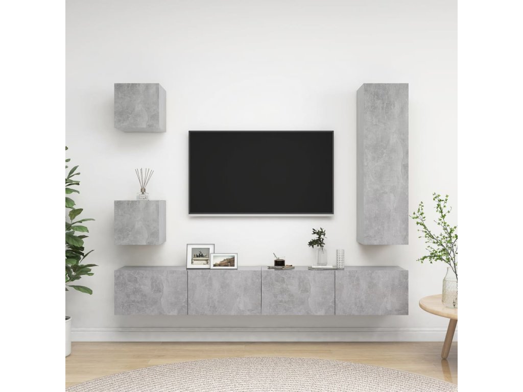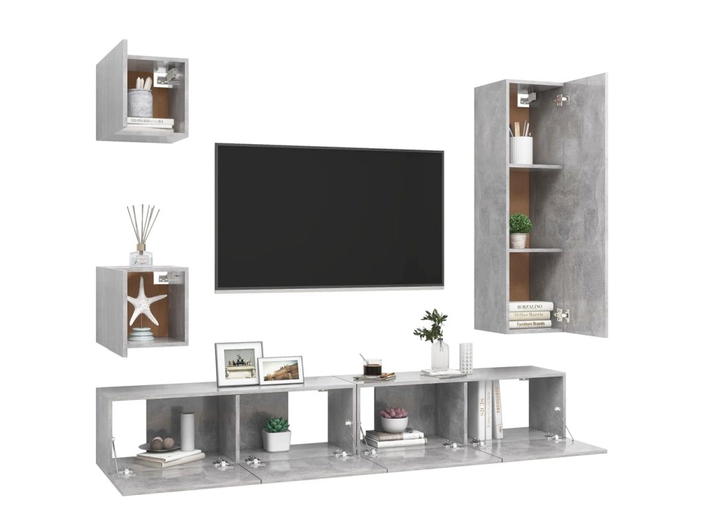 5dílný set TV skříněk betonově šedý kompozitní dřevo 3079117