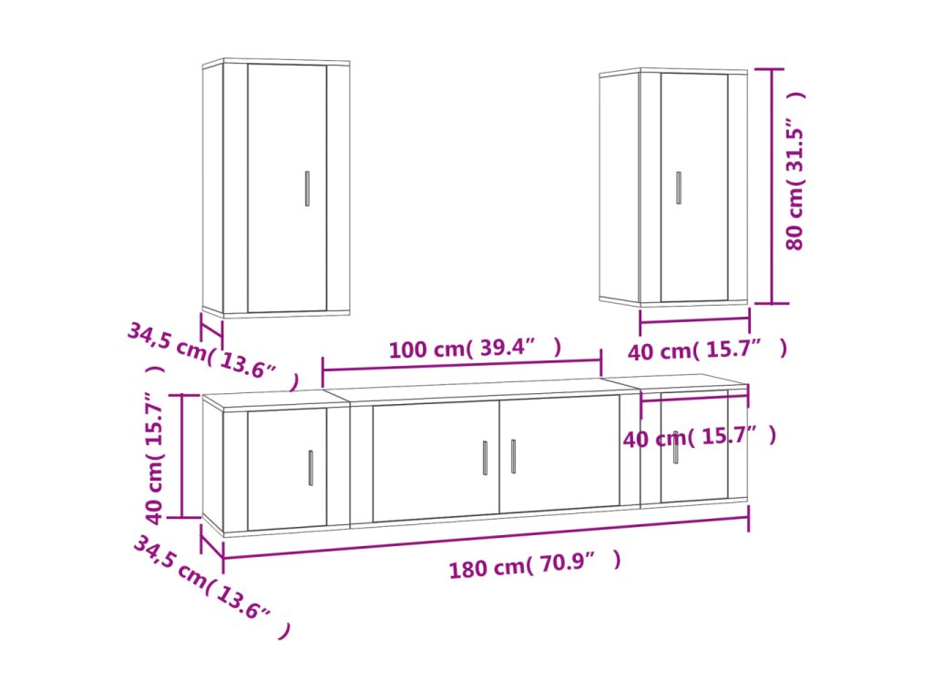 - 2x TV skříňka: 40 x 34,5 x 80 cm (D x Š x V)