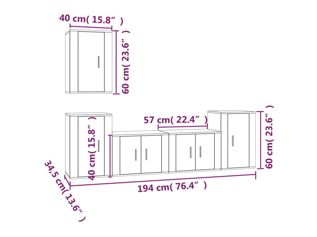 - 3x TV skříňka: 40 x 34,5 x 60 cm (D x Š x V)