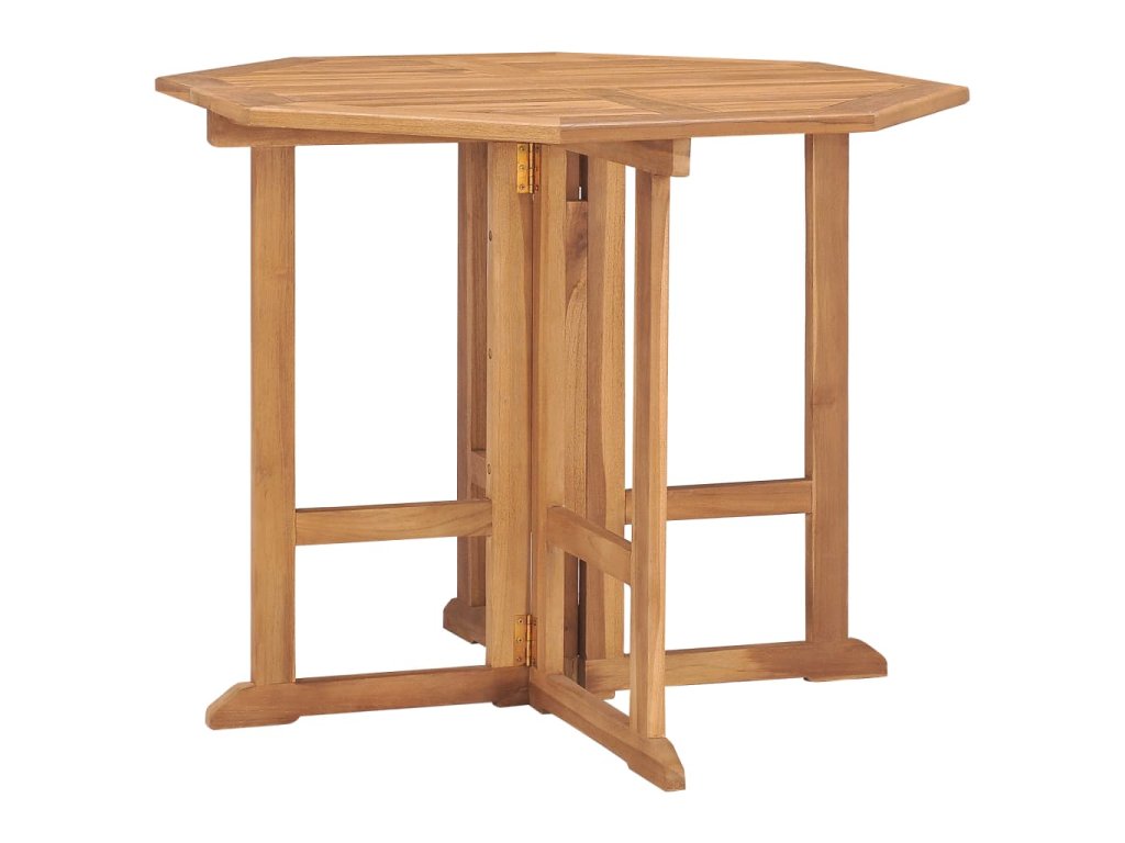 Nábytek je zhotovený z extrémně odolného teakového tvrdého dřeva, které již prošlo procesem smršťování, bylo uměle vysušené a poté jemně a dohladka obroušené. Toto dřevo je oceňované pro svou výjimečnou pevnost a klimatickou odolnost, a proto je zdaleka nejvhodnějším materiálem pro výrobu zahradního nábytku. Jedná se o skvělou volbu, pokud si chcete pořídit zahradní vybavení, které vám vydrží sloužit dlouhá léta. Když jídelní stůl a židle zrovna nepoužíváte, můžete ji složit a ušetřit tak místo.