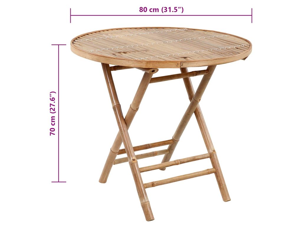Zahradní jídelní set je zhotovený z masivního bambusu, je tedy pevný a hodně toho vydrží. Skvěle také odolává vodě a dalším klimatickým vlivům a k očištění vám postačí navlhčený hadřík. Stůl i židle lze složit, abyste ušetřili místo, když je zrovna nepoužíváte. Přiložené podušky se vám při odpočinku postarají o maximální pohodlí. Jsou ušité ze 100% polyesteru s voděodolnou úpravou a každá z nich je opatřená dvěma páry šňůrek, kterými je můžete k židli pevně přichytit.