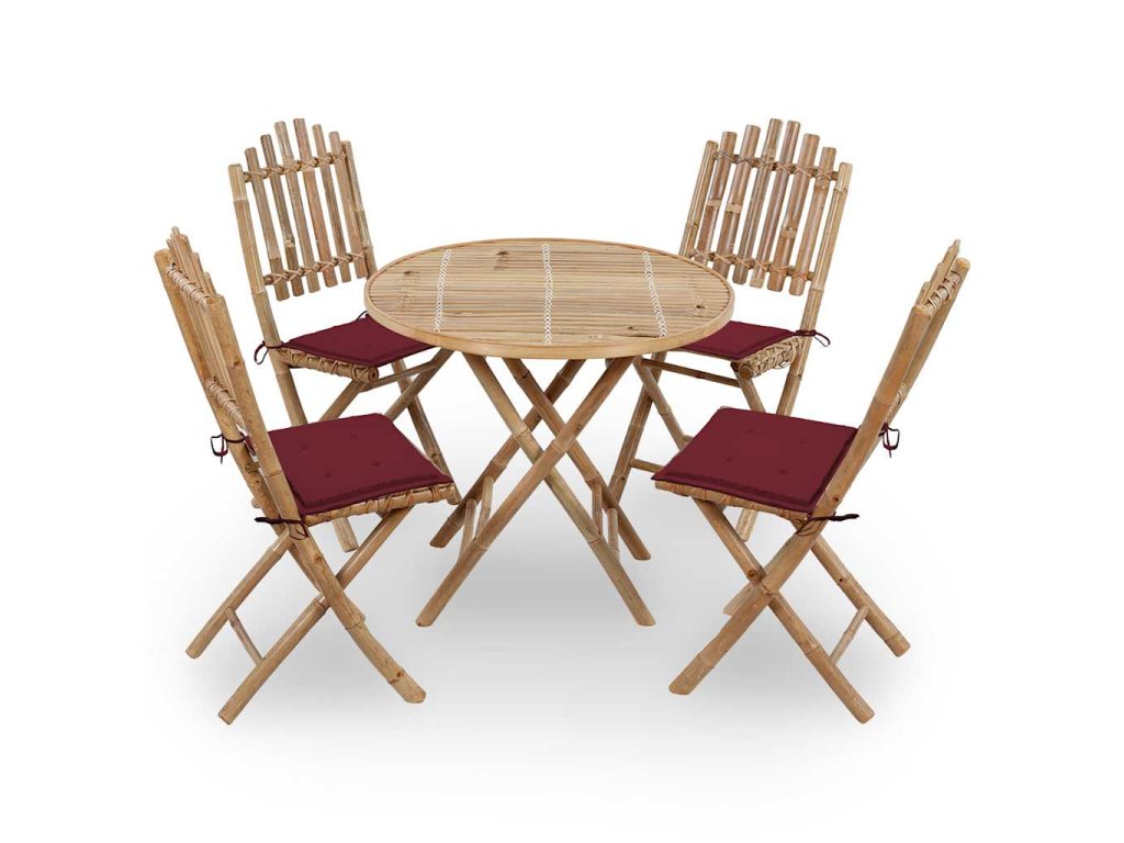 Tento bambusový skládací jídelní set s poduškami představuje dokonalou volbu pro slavnostní stolování nebo jen tak pro lenošení.