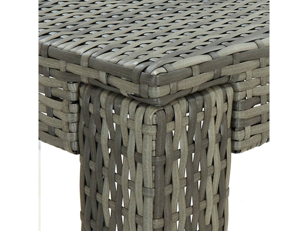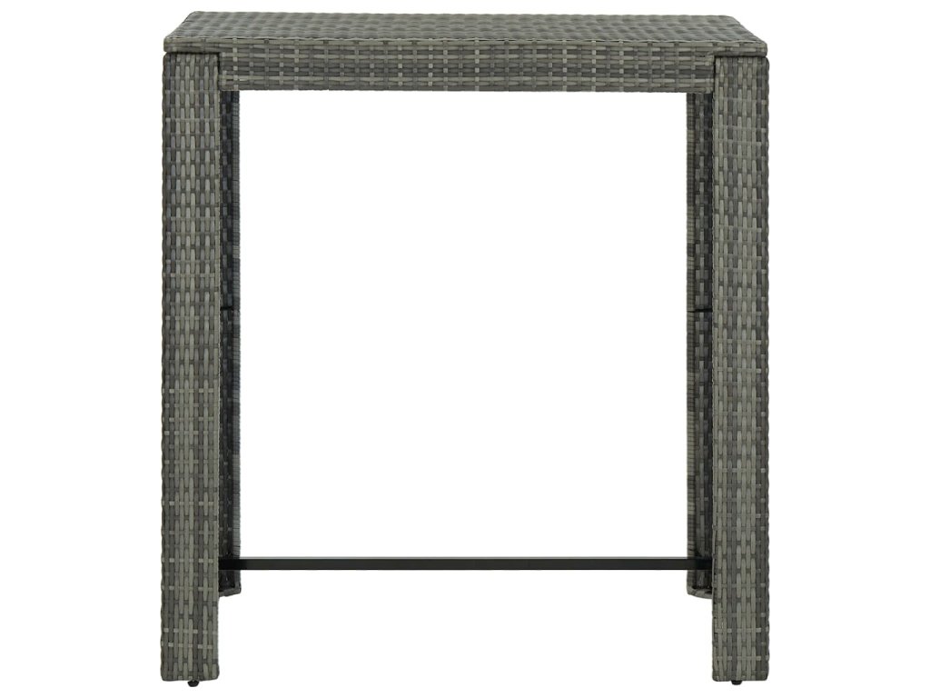 Barový stůl je zpevněný ocelovým rámem s práškovým nástřikem, takže je stabilní a bytelný. Čtvercová deska stolu je ideální pro servírování nápojů, jídla nebo k vystavování dekorativních předmětů. Stoličky mají robustní rám z oceli a jsou vyrobené z klimaticky odolného PE ratanu, který je zárukou stability a umožňuje snadné přenášení. Poduška a opěrka na nohy přispívají k většímu pohodlí při sezení na stoličce. Polyesterový potah na podušky se skrytým zipem usnadňuje čištění.