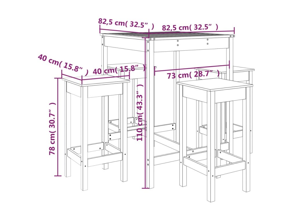 - Rozměry barového stolu: 82,5 x 82,5 x 110 cm (Š x H x V)