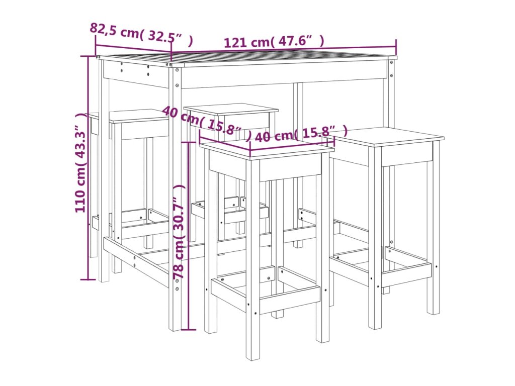 5dílný zahradní barový set bílý masivní borové dřevo 3154746